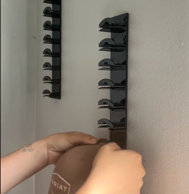 Whether you prefer a clean, no drill setup or a more permanent hold, both methods keep your hat rack firmly in place so your collection stays neat, secure, and beautifully displayed.